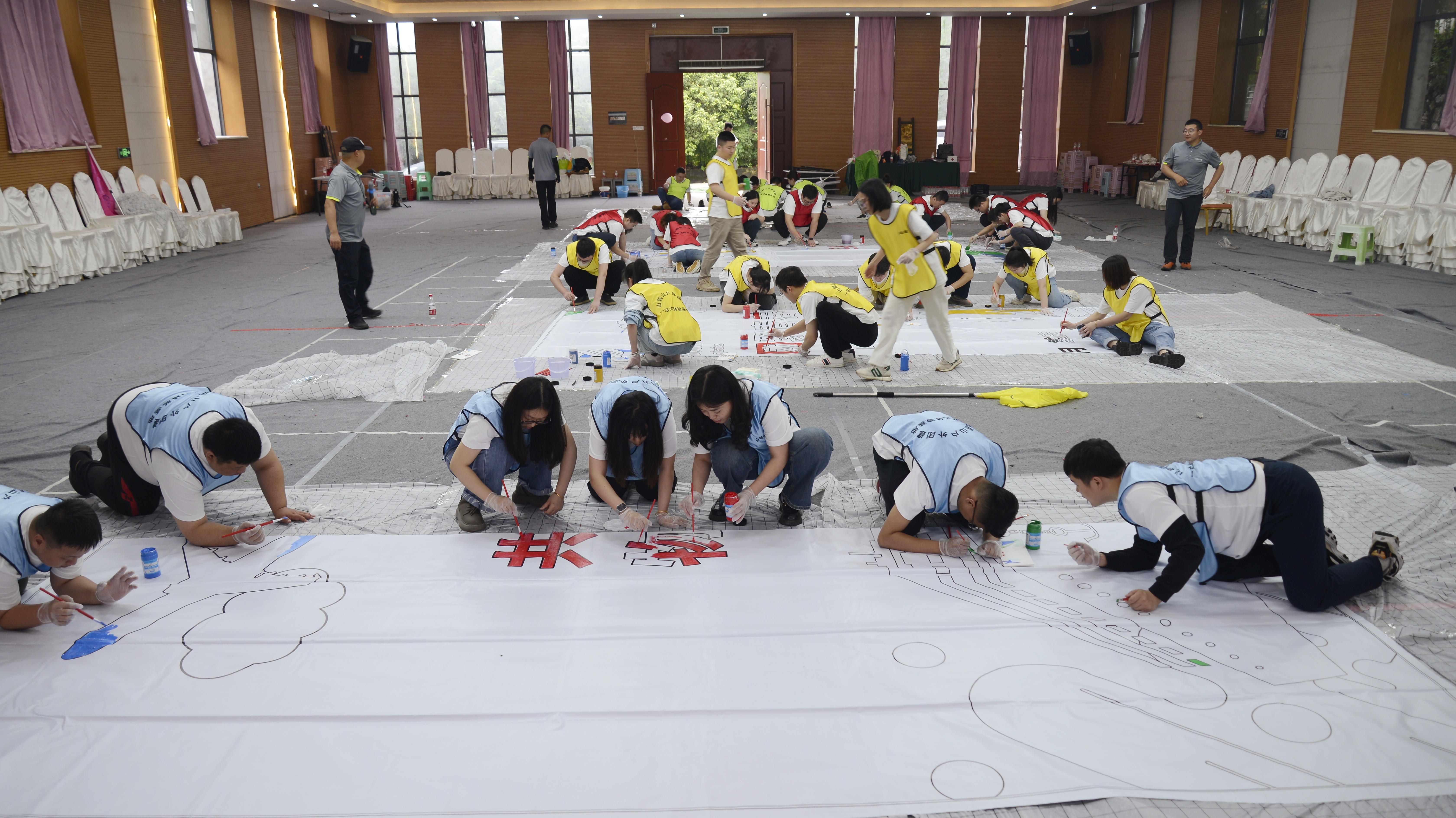 活動(dòng)主要分為共繪“納斯卡巨畫”和趣味團(tuán)建活動(dòng)兩個(gè)環(huán)節(jié)。在繪制“納斯卡巨畫”過程中,團(tuán)員青年們分組分工協(xié)作,一筆一劃勾勒形狀,一橫一豎涂刷色彩,繪制完成所負(fù)責(zé)部分的圖案,實(shí)現(xiàn)從無到有,從雛形到重彩,用自己的筆觸和想象,共同描繪自己心中的“一個(gè)中國物流”藍(lán)圖。